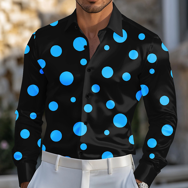 Men's Geometric Round Dots Shirt Satin Shirt Dress Shirt Long Sleeve Fashion Casual Vacation Dailywear Summer Spring Fall Turndown 3D Print Button Up Shirts Black Red Black / Green Black / Blue Black