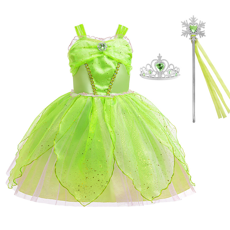 Peter Pan Fairy Tale Princess Elf Tinker Bell Dress Flower Girl Dress Tulle Dresses Storybook Characters Movie Cosplay for Girls' Kid's Halloween Carnival World Book Day Performance Educational Dress