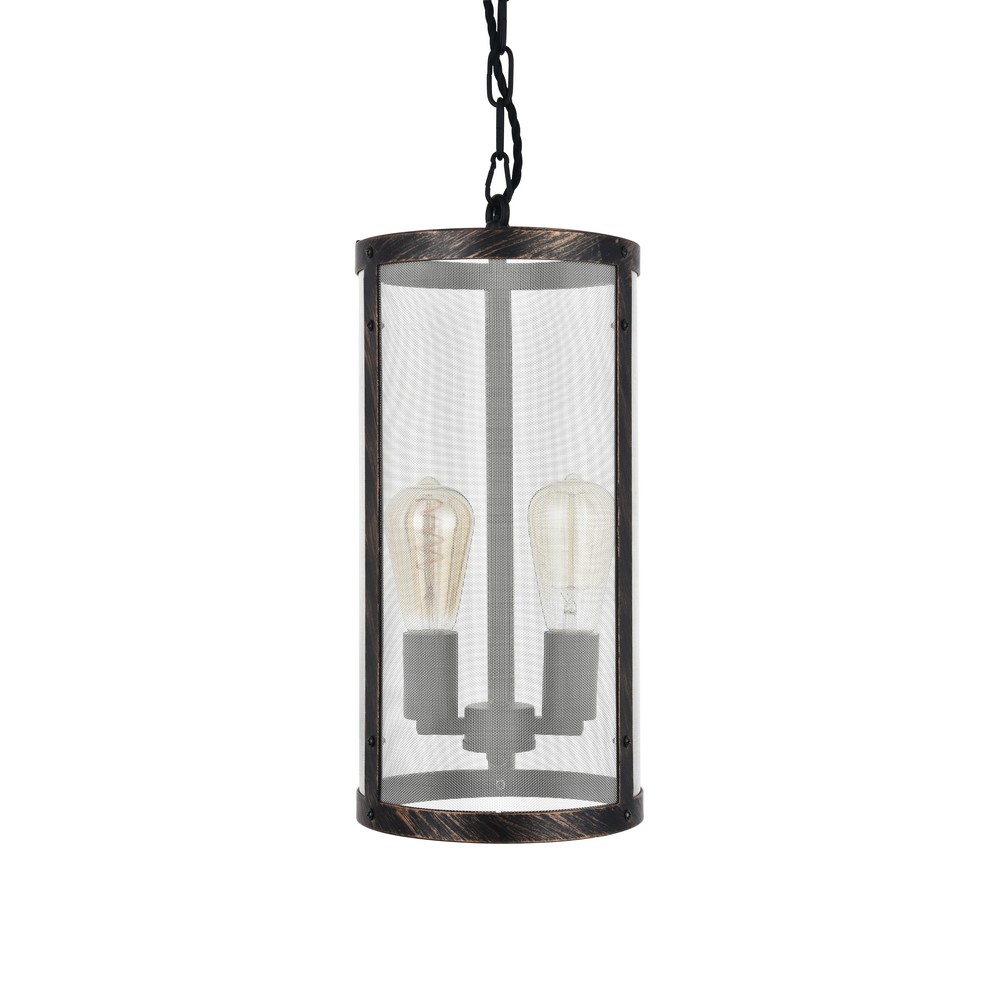 Tisbury Cylinder Mesh Lantern Style Industrial Gothic Pendant Light - Brushed Brass - Elesi