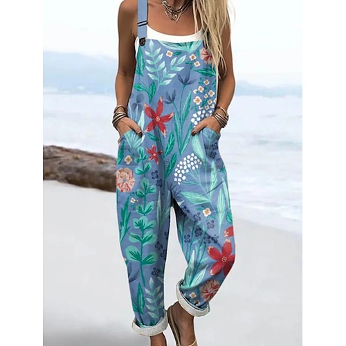 Per donna Salopette Attivo Floreale Senza Maniche Harem Coulisse con tasca Vacanza Streetwear Vestibilità comoda Nero Bianco Blu Estate