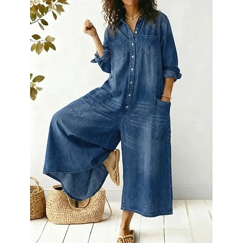 Per donna Tutina Attivo Manica Lunga Gamba larga Quotidiano Vacanza Vestibilità comoda Blu Nero Primavera