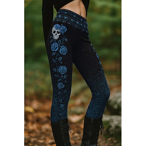 Per donna Leggings Vacanza Vintage Stile Etnico Lunghezza alla caviglia Vita Alta Floreale Grafico Stampa 3D Asciugatura Rapida Traspirabilità Morbido Elasticizzato All'aperto Casa Casual Bianco Blu