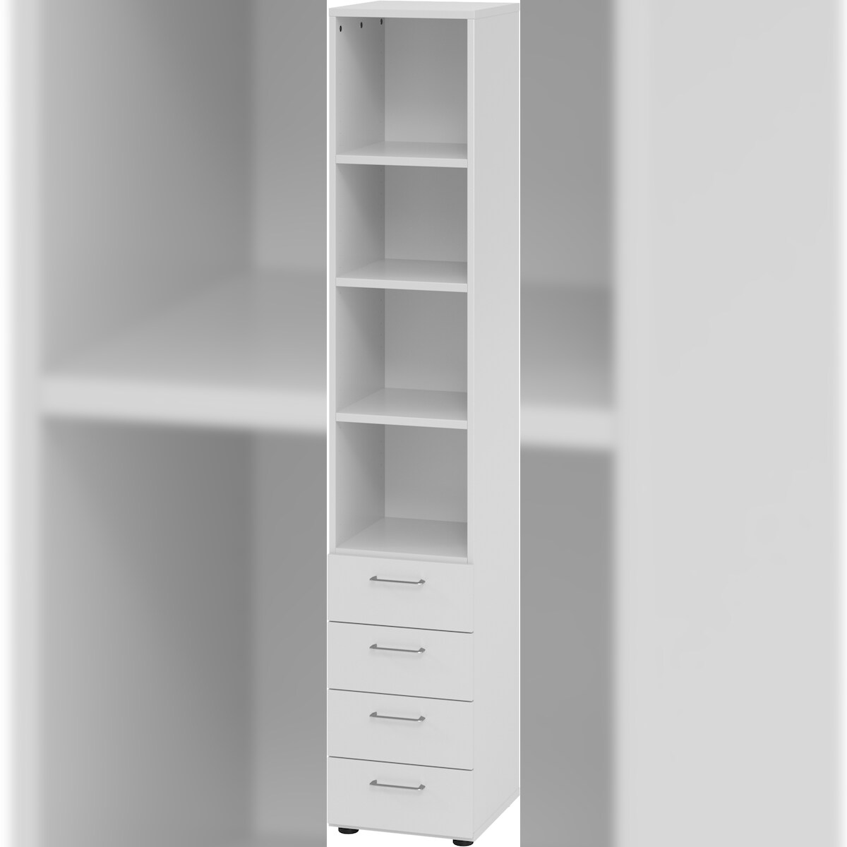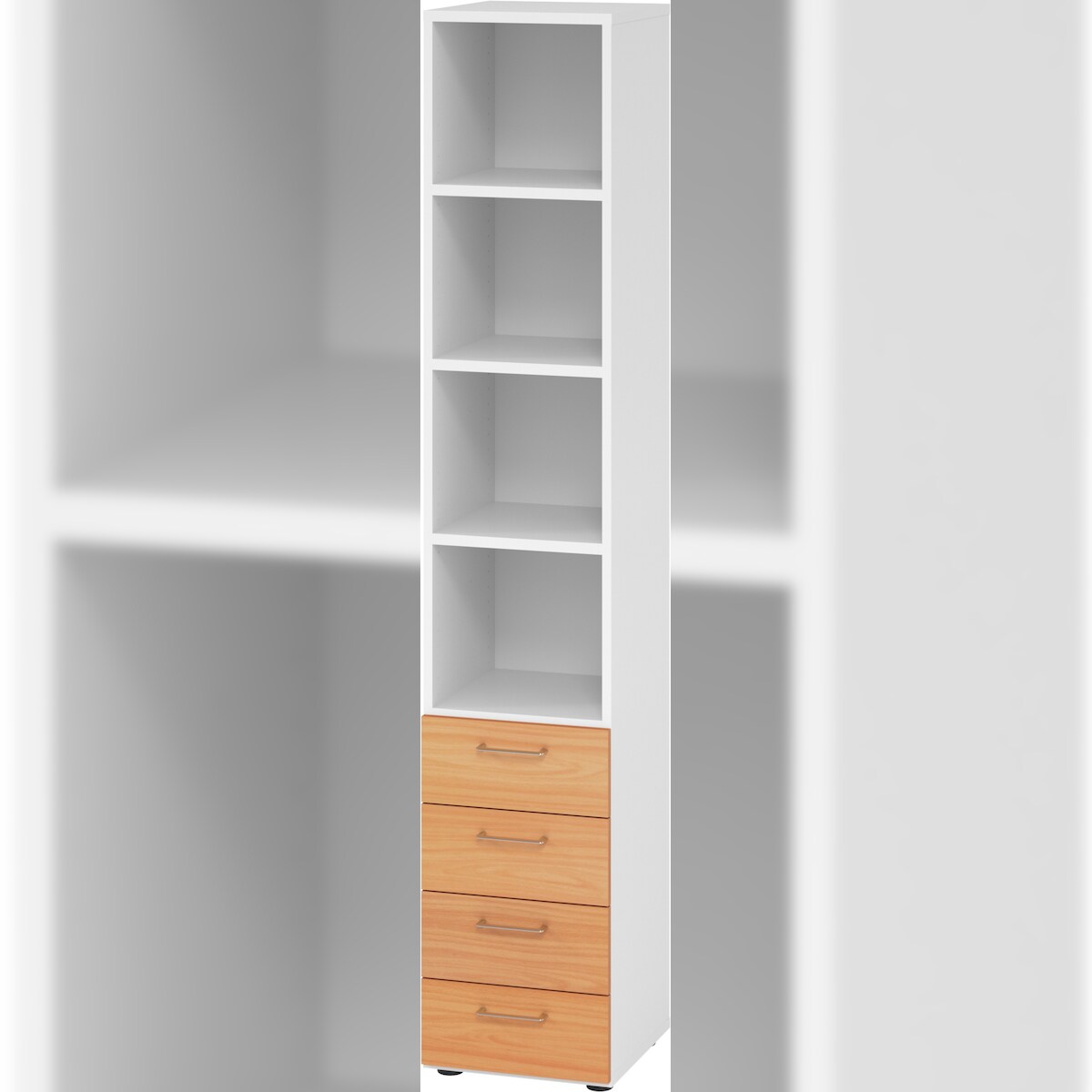 bümö smart Schubladenschrank, Büroschrank in Weiß/Buche mit 4 Schüben & 4 Regalfächern - Bürocontainer aus Holz, Container mit Metallgriffen &