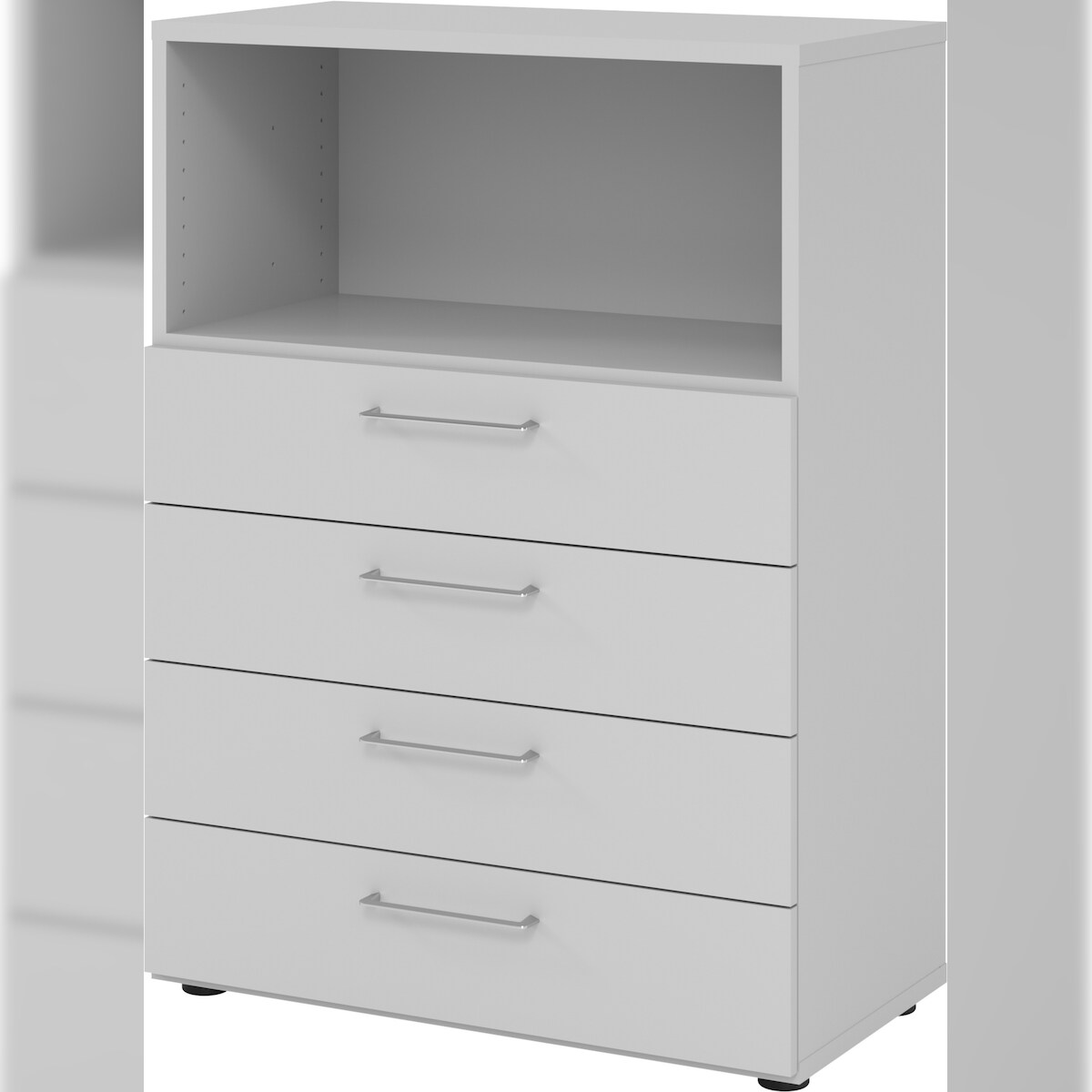 bümö smart Schubladenschrank, Büroschrank 80cm breit in grau mit 4 Schüben & 1 Regalfach - Bürocontainer aus Holz, Container mit Metallgriffen &