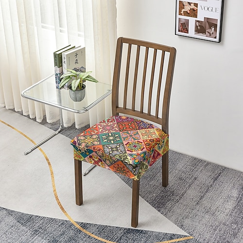 Coprisedile per sedia da pranzo Coprisedile per sgabello Coprisedile in poliestere con stampa geometrica Coprisedile elasticizzato per sedia per cucina Sala da pranzo Casa