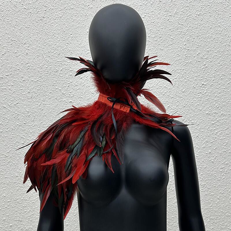 Women's White Feather Cape Shawl with High Collar, Gothic Angel Costume Accessories, Snow Queen Ice Witch Cosplay Shrug