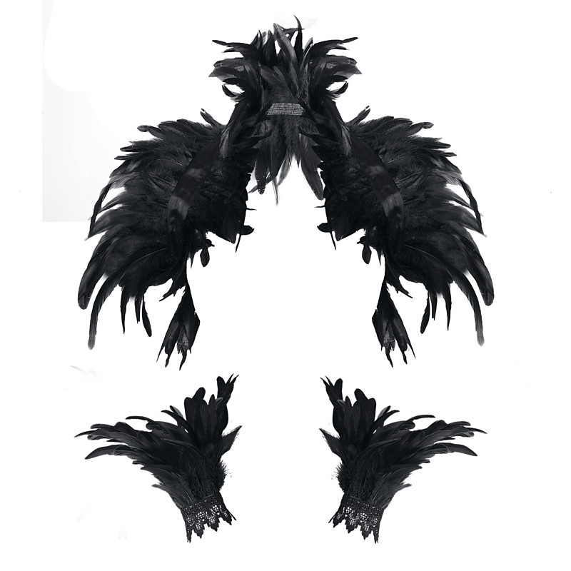 Carnevale 2026 Accessori per Samba di Rio Mantello in piume naturali gotico - Sciarpa spalla con colletto di pizzo Costumi per donne Carnevale in Brasile