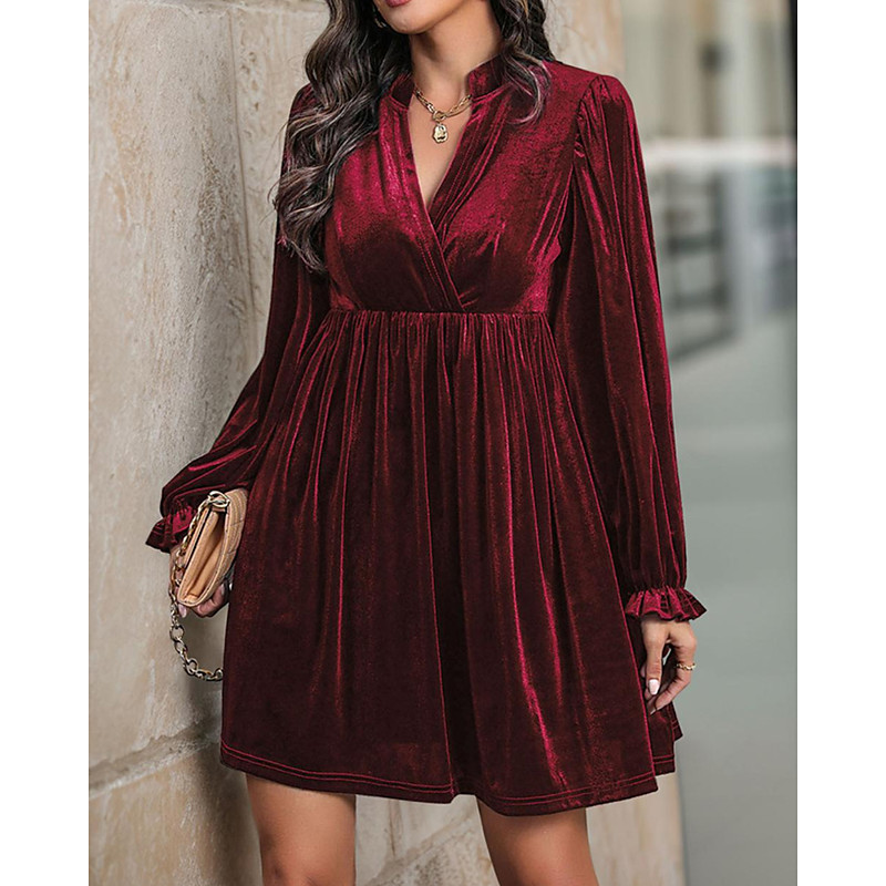 Women's Mini Dress Christmas Dress Velvet Dress Cocktail Dress Fashion Modern Evening Party Date Weekend Regular Fit Plain Long Sleeve V Neck Wine Navy Blue Orange Green Fall Winter
