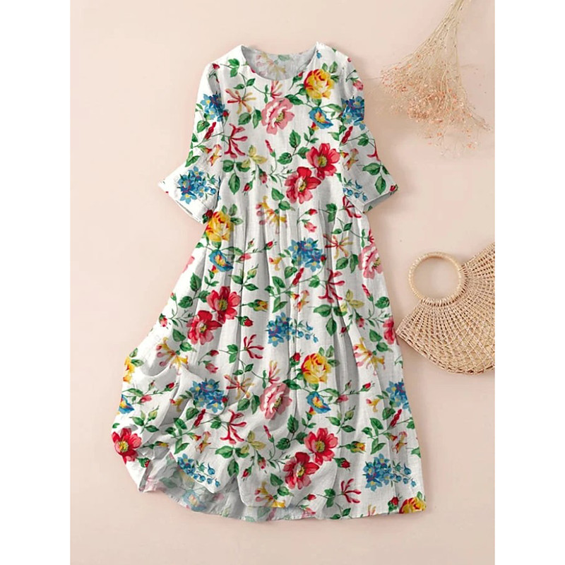 Vestito Midi da Donna Vestito Shift Vestito Sole Floreale Stampa con Tasche V Neck Data Vacanza Maniche Corte Estate Primavera