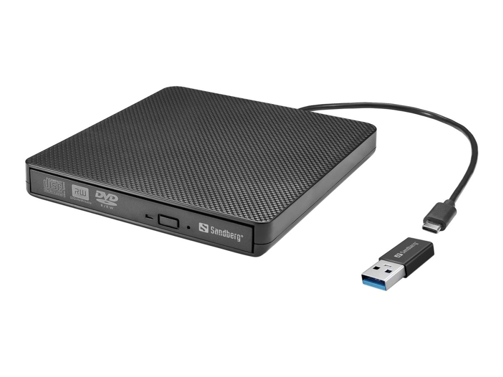 Sandberg USB-C/A DVD-asema, Sort, Bakke, Desktop/Laptop, DVD Super Multi DL, USB Type-C, CD-R, CD-ROM, CD-RW, DVD+R DL, DVD-R, DVD-R DL, DVD-RAM, DVD-RAM, DVD-ROM, DVD-RW