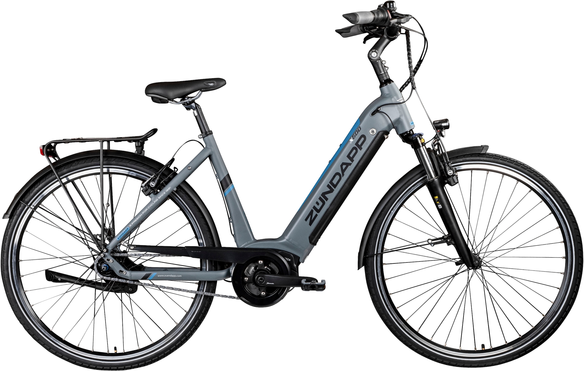 E-Bike ZÜNDAPP "X600" Gr. 50, grau (grau, blau), Elektrofahrräder, 50cm, 28 Zoll (71,12cm), Pedelec, Elektrofahrrad für Damen u. Herren