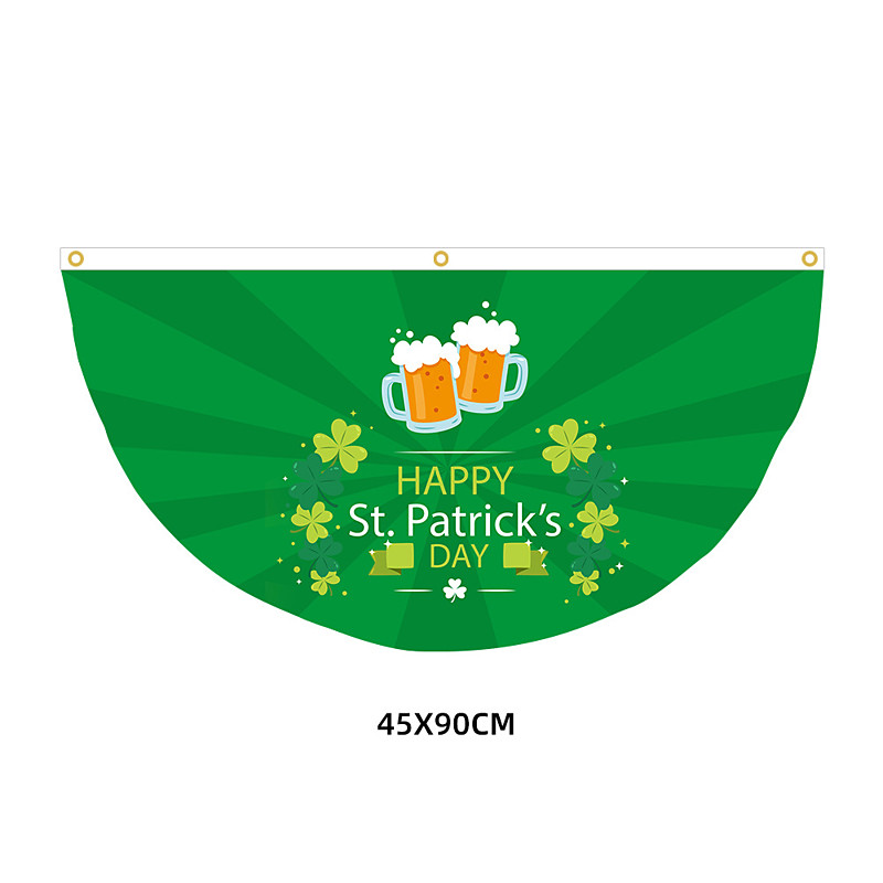 St Patrick's Day Flag, Irish Clover Green Leaf Design, Half-Round Fence Decoration, St. Patrick's Day Ireland Flag for Outdoor Festive Decor.