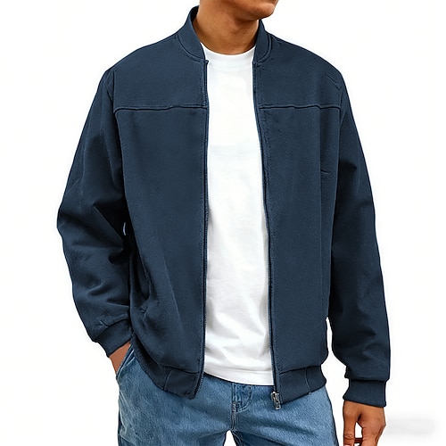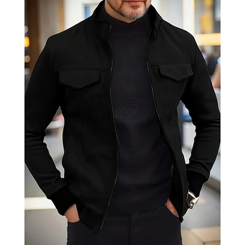Per uomo Giacca in finta pelle scamosciata Giacca Casual Quotidiano All'aperto Comodità Tasca Primavera Autunno Semplice Vintage Streetwear Collo alla coreana Regolare Blu Nero Blu marino Marrone