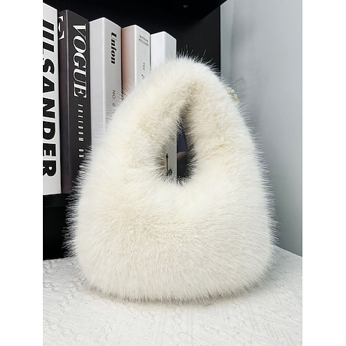 Per donna Borsa Borse a Spalla Pelliccia finta Natale Feste Casuale Cerniera Leggero Tinta unica Tessuto almond Nero Rosa