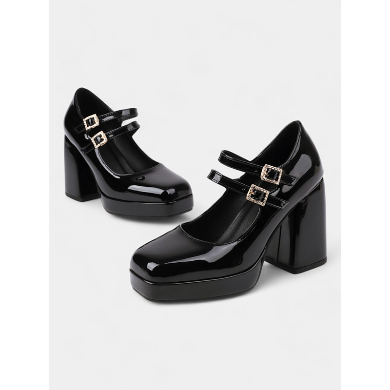 Women's Retro Patent Faux Leather Chunky Mary Jane Pumps with Double Strap – Fashion Block Heel Shoes for Vintage-Inspired Party or Casual Outfits