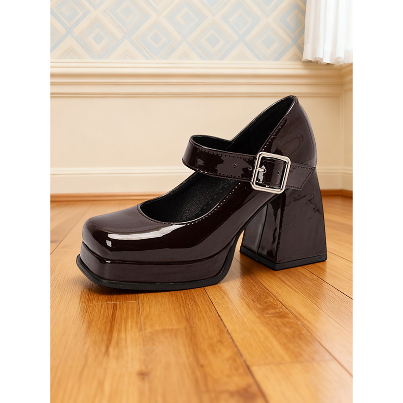 Women's Burgundy Patent Faux Leather Mary Jane Pumps – Chunky Block Heel with Adjustable Strap,Perfect for Valentine's Day, Daily and Party Wear