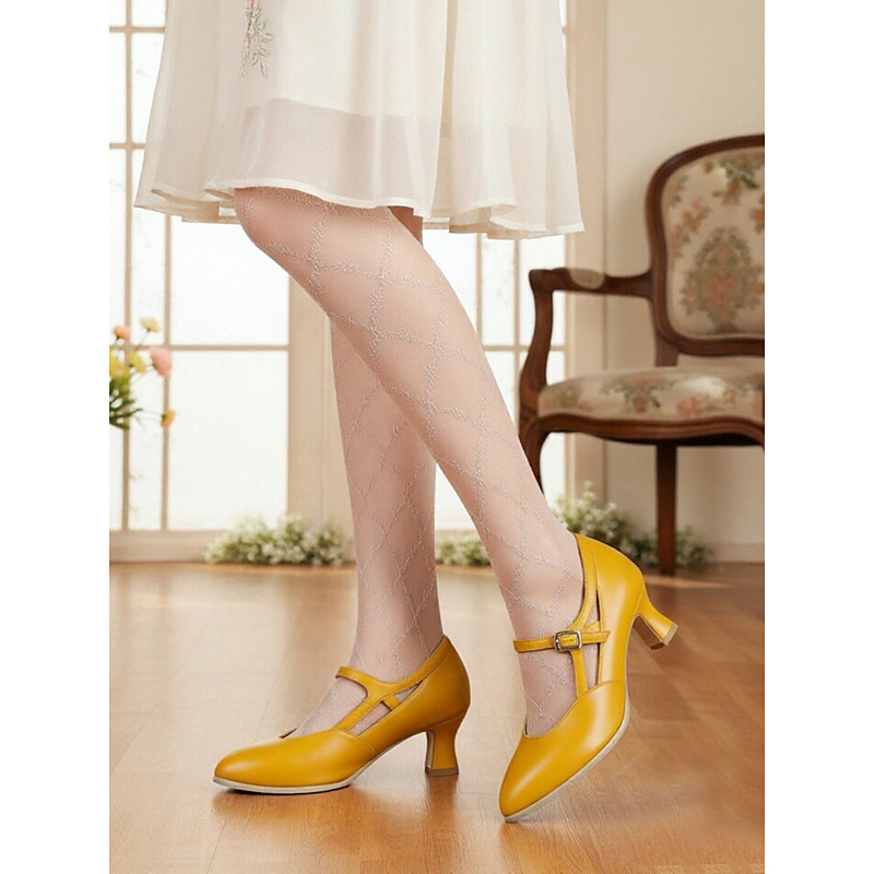 Women's 1920s Vintage Yellow Mary Jane Pumps with Low Mid Heel – Elegant Closed-Toe Design for Gatsby Parties, Swing Dance Special Occasions