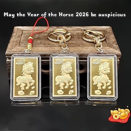 Portachiavi dell'anno del cavallo 2026 - souvenir fortunato con motivo a cavallo, segno zodiacale quadrato, resistente moschettone in lega di alluminio, perfetto per decorazioni di Capodanno,