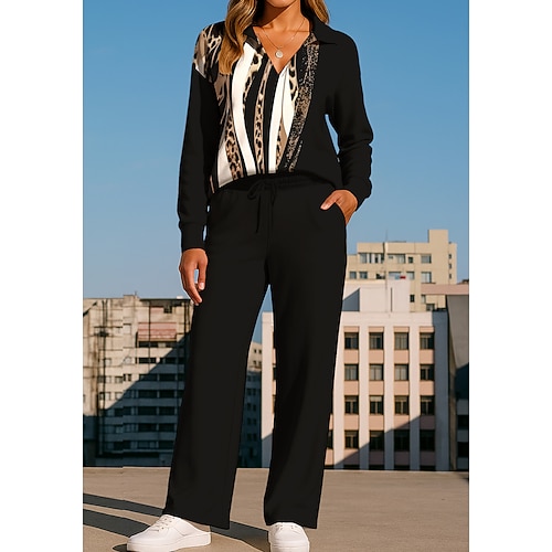 Per donna Maglia Tuta da Ginnastica Pantaloni da Tuta Coulisse Cerniera Leopardo Giacca e Pantaloni da Tuta Set di Abbigliamento Sportivo Loungewear Estate Bianco / Nero Allenamento in Palestra