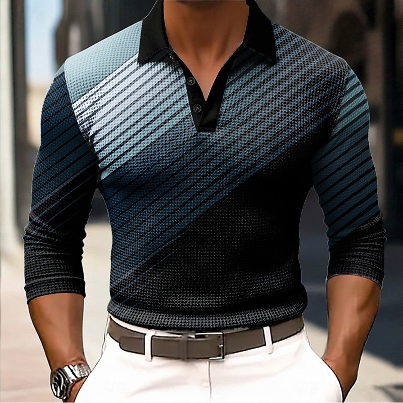 Men's Abstract Geometic Waffle Polo Shirts Long Sleeve Polo Shirts Collared Shirts Business Casual Business Wear to work Daily Wear Buttons Spring Fall Winter Blue Red Green