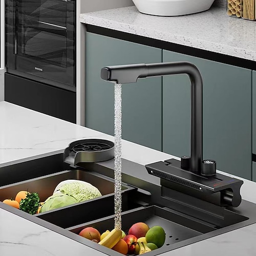 Wasserfall-Küchenarmatur, herausziehbarer Spültischmischer, Wasserhähne, LCD-Digitalanzeige, mit G1/2-Kalt- und Warmwasserschlauch