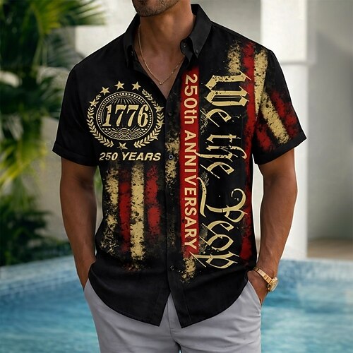Herren 250. Jahrestag des Unabhängigkeitstages der USA am 4. Juli US Flagge Wir die Leute Hemd Sommerhemd Knopfhemd Kurzarm Patriotisch Outdoor Ferien Sommer Frühling Umlegekragen 3D-Druck Hemden mit
