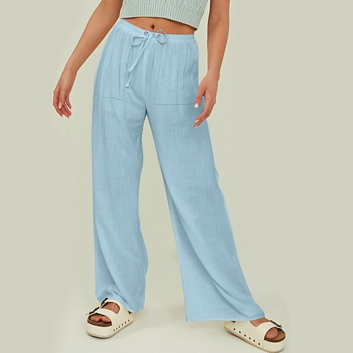 Per donna Pantaloncini in cotone e lino Pantaloni ispirati al lino Pantaloni in cotone e lino Attivo Semplice Casual Lunghezza al polpaccio Vita Alta Semplice Tasca Comodo Traspirabilità Morbido