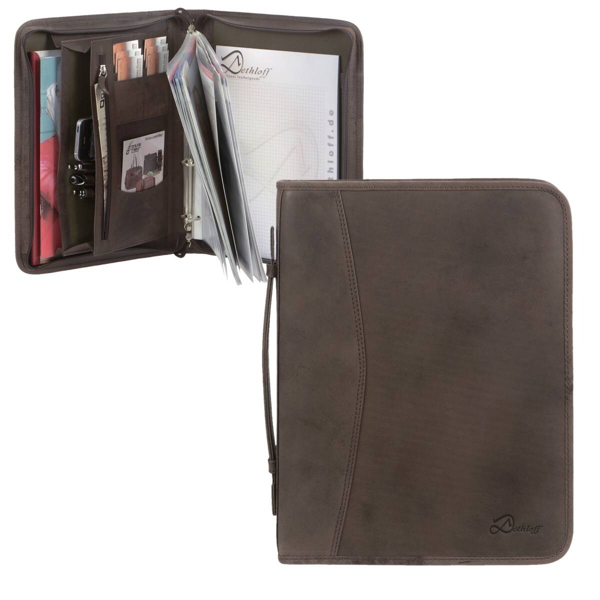 Dethloff Konferenzmappe A4 Leder braun Schreibmappe Ringbuchmappe Aktenmappe mit Griff D0134222-S