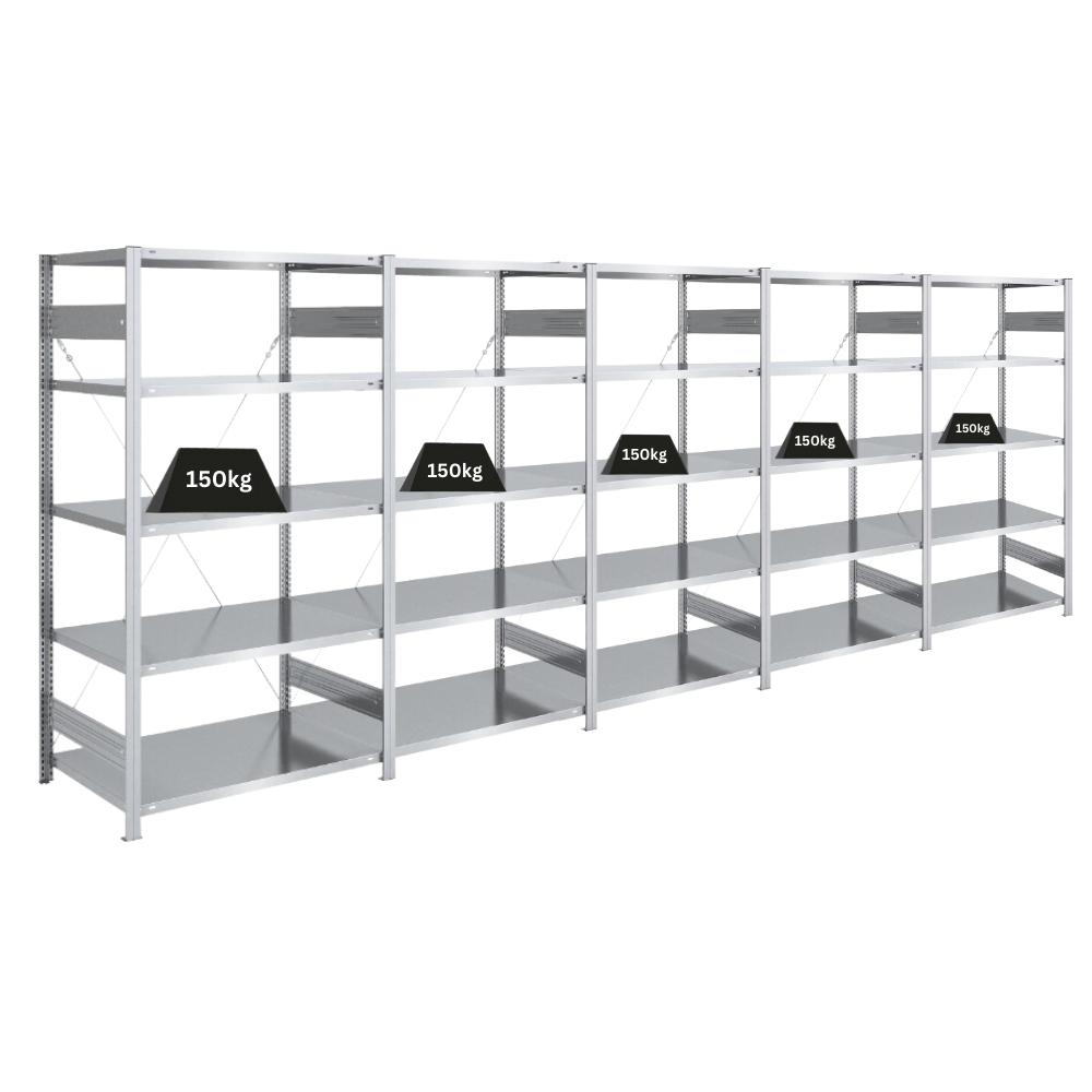 PROREGAL Schwerlastregal Silver Mamba Made in Germany | HxBxT 200x500x60cm | 5 Ebenen je 150kg Fachlast | Verzinkt