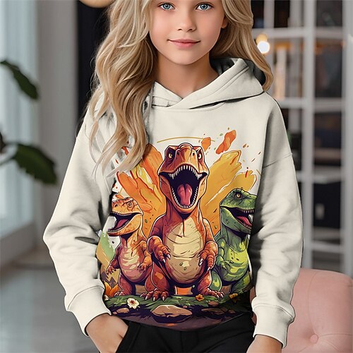Mädchen 3D Cartoon Dinosaurier Kapuzensweatshirt Langarm Frühling Herbst Mode Streetwear Kinder 4-12 Jahre Mit Kapuze Outdoor Lässig Täglich Normale Passform
