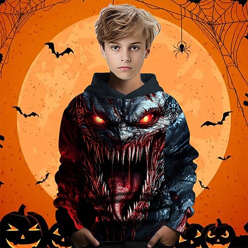 Halloween Jungen 3D Grafik Hoodie Langarm Frühling Herbst Mode Streetwear Kinder 4-12 Jahre mit Kapuze Outdoor Casual Täglich Regular Fit
