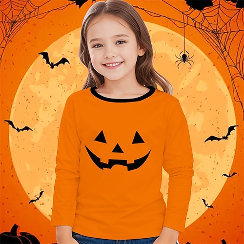Halloween Mädchen 3D Cartoon T-Shirt Langarm Frühling Herbst Mode Basic Kinder 4-12 Jahre Rundhalsausschnitt Outdoor Lässig Täglich Normale Passform