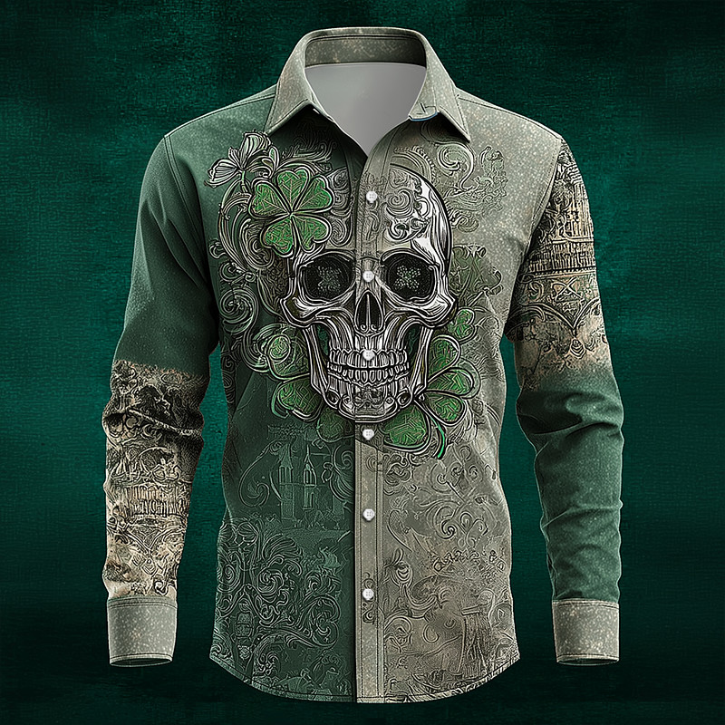 St. Patrick's Day Men's Four Leaf Clover Shamrock Celtic Art Shirt Button Up Shirt Long Sleeve Vintage Retro Holiday Spring Fall Turndown 3D Print Linen Like Shirt Green 1# Dark Red Green Dark Blue