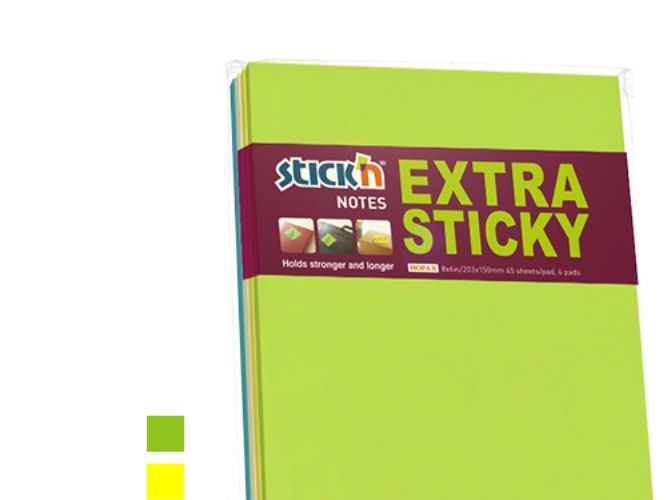 Notes Stick'N ekstra sticky 203x150mm 45 blade ass. 4blk/pak