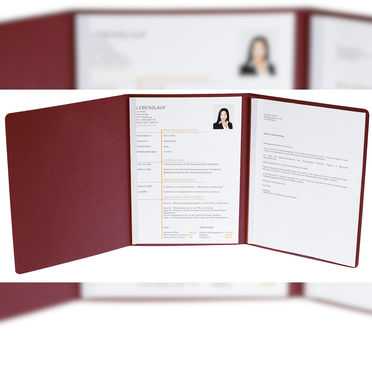 Exacompta 49208B 5x Bewerbungsmappe aus Colorspan-Karton 400g/qm mit Leinenoptik, 3-teilig mit 2 Klemmschienen, DIN A4 - Bordeauxrot