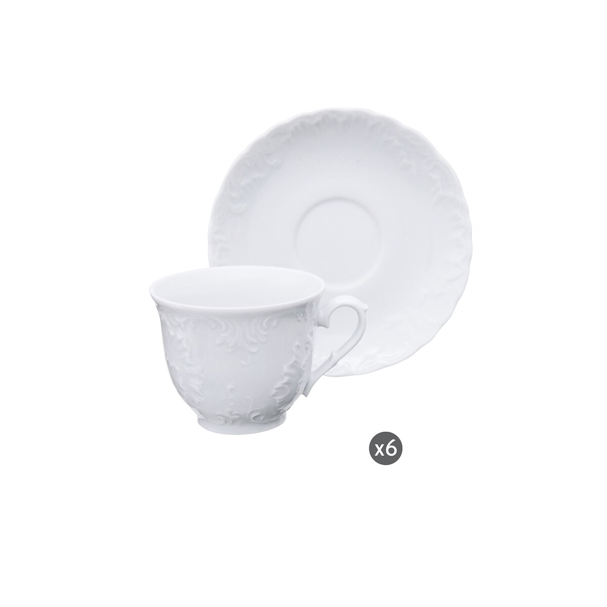 Excelsa Set Von 6 Teatassen Mit Untertassen Elisa Rococo' Porzellan 21 Cl Weiß