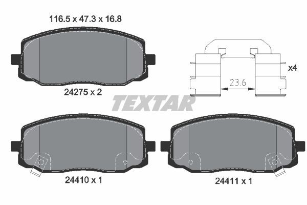 Jarrupalasarja, levyjarru, Etuakseli Textar 2427501 - hyundai i10 i, i10 sedan ii, kia picanto i - OE 5810107A00, 5810107A10, 5810107A20