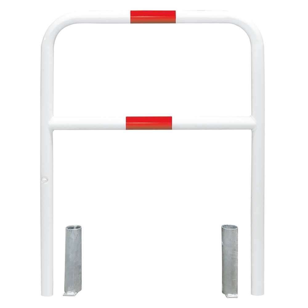 PROREGAL Schutzbügel als Umlaufsperre inkl. Bodenhülsen | Herausnehmbar mit Dreikantschloss | HxB 130x100cm | Rohr-Ø 6cm | Rot-Weiß