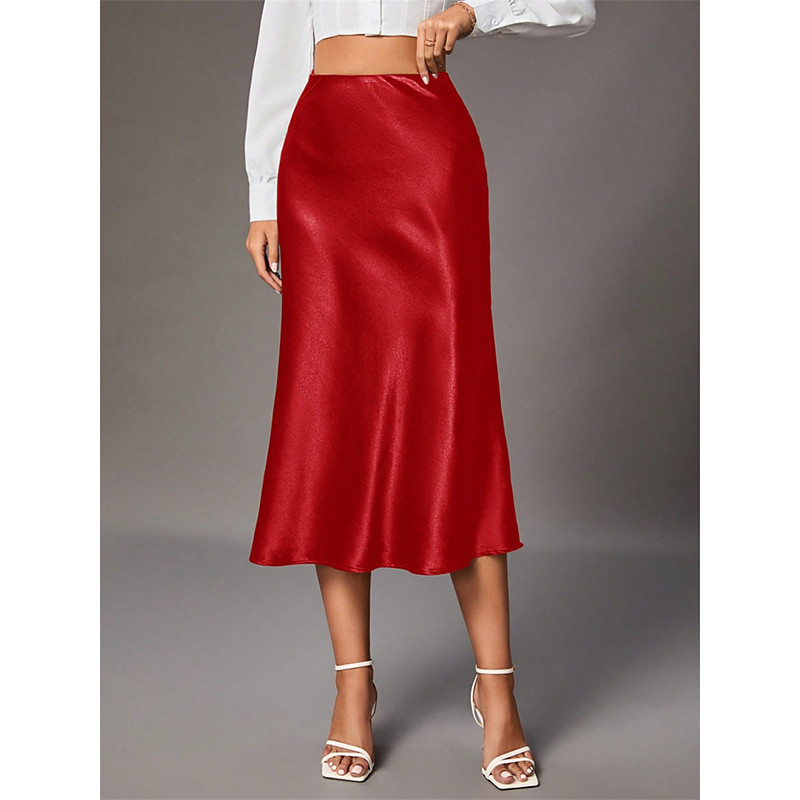 Women's Satin Skirts Elegant Vintage Fashion Midi High Waist Skirts Plain Ruched Patchwork Inelastic Daily Party Wine Almond Pink Army Green Summer Spandex Satin