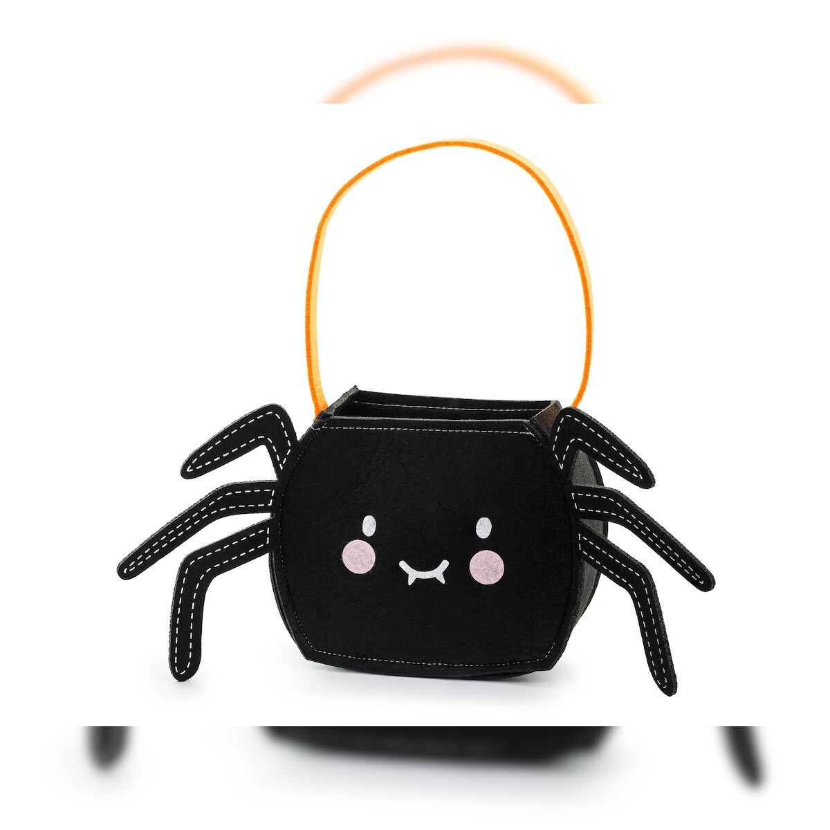 PartyDeco Spinne Tasche für Süßigkeiten 18x8x35cm Filz - Süßes oder Saures Sammeltasche Spinnentasche Halloween Kindergeburtstag Fasching Beutel Schwarz