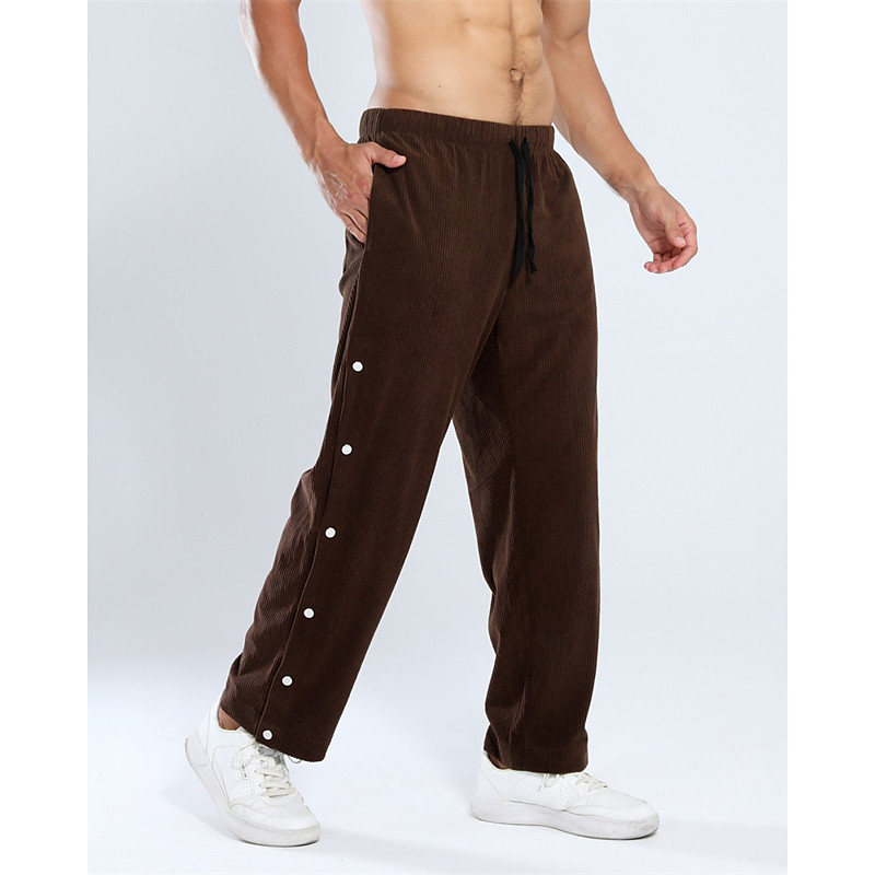 Men's Sweatpants Tear Away Pants Trousers Corduroy Pants Drawstring Pocket Elastic Waist Plain Comfort Sports Outdoor Daily Fashion Casual Dark Brown Black Micro-elastic
