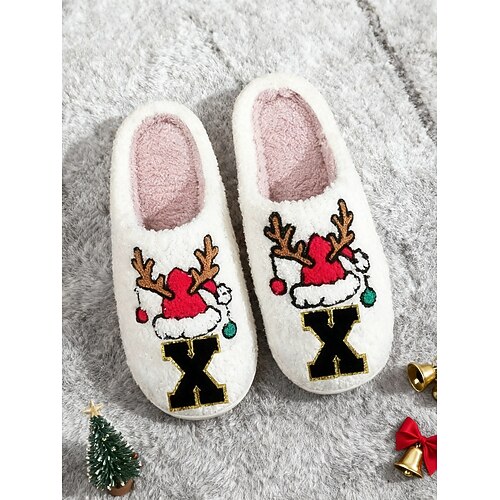 comode pantofole natalizie da donna con design a renna: morbide pantofole con 26 lettere tra cui scegliere, a tema natalizio, perfette per rilassarsi e come regalo