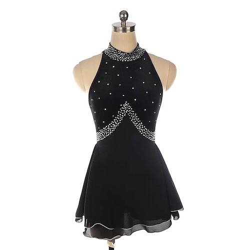 Eiskunstlaufkleid Damen Mädchen Eislaufen Kleid Schwarz Patchwork Offener Rücken Netzstoff Spandex Dehnbar Training Übung Professionell Eiskunstlaufkleidung Thermowarm Kristall / Strass Ärmellos