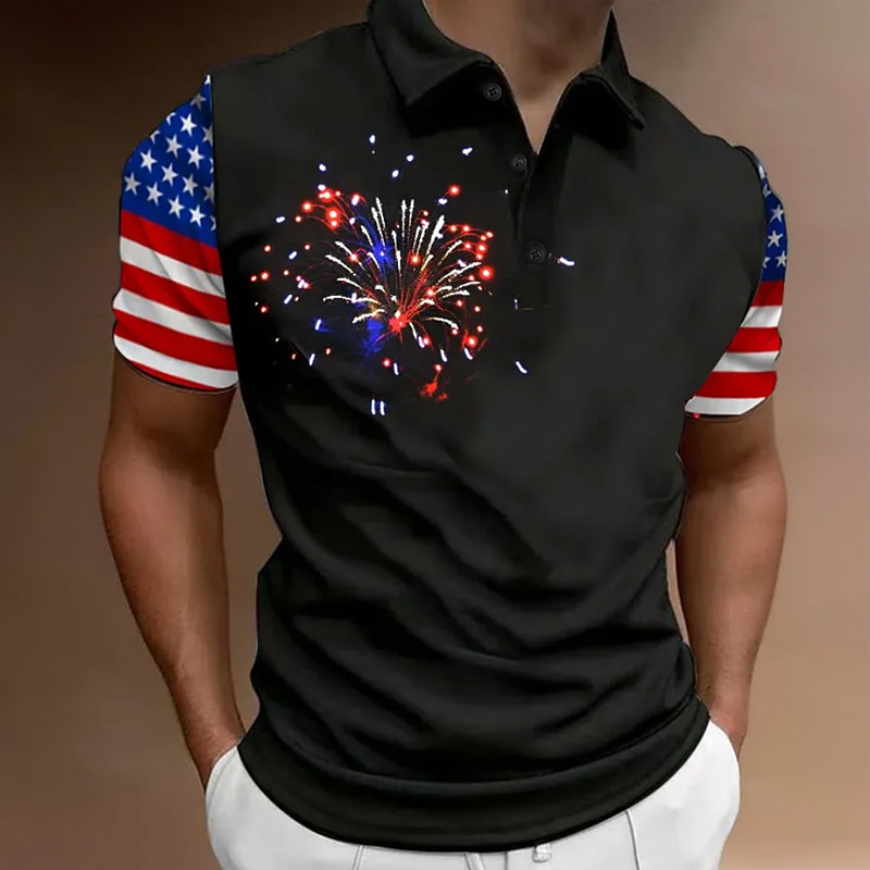 American Independence Day Men's American US Flag Polo Short Sleeve Polo Shirts Lapel Casual Athleisure Festival Outfit 3D Print Buttons Summer Black White Gray