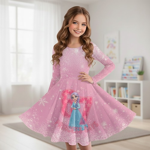 Mädchen' 3D Grafik Cartoon 67 Kleid Langarm 3D-Druck Frühling Herbst Leistung Urlaub Party Lässig Prinzessin Schön Kinder 4-12 Jahre Freizeitkleid A Linie Kleid Knielang Normale Passform