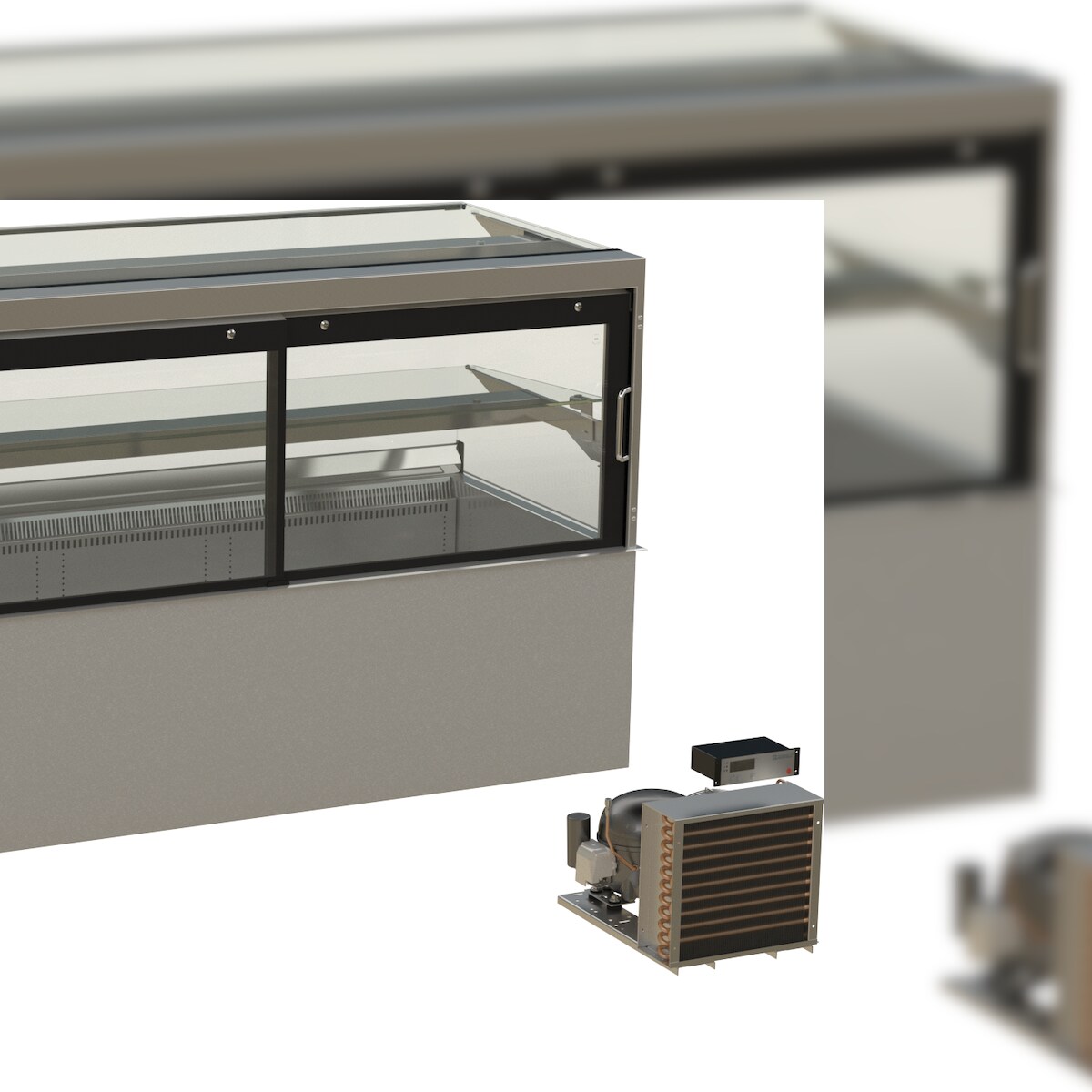 Showcase "Göteborg" eckig, SBO, für 1,5xGN1/1, 3 Auslagen 150mm Tiefe, 597x710/400x710mm (BxHxT) steckerfertig mit Schnellkupplung