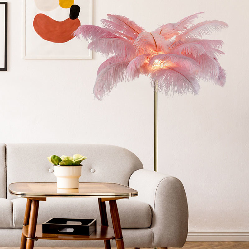 Feather Floor Lamp Feather LED Floor Lamp Iron Art Creative Nordic Bedroom Bathroom Living Room Wedding Study Floor Lamp Floor Lamp Home Decoration with Round Metal Base
