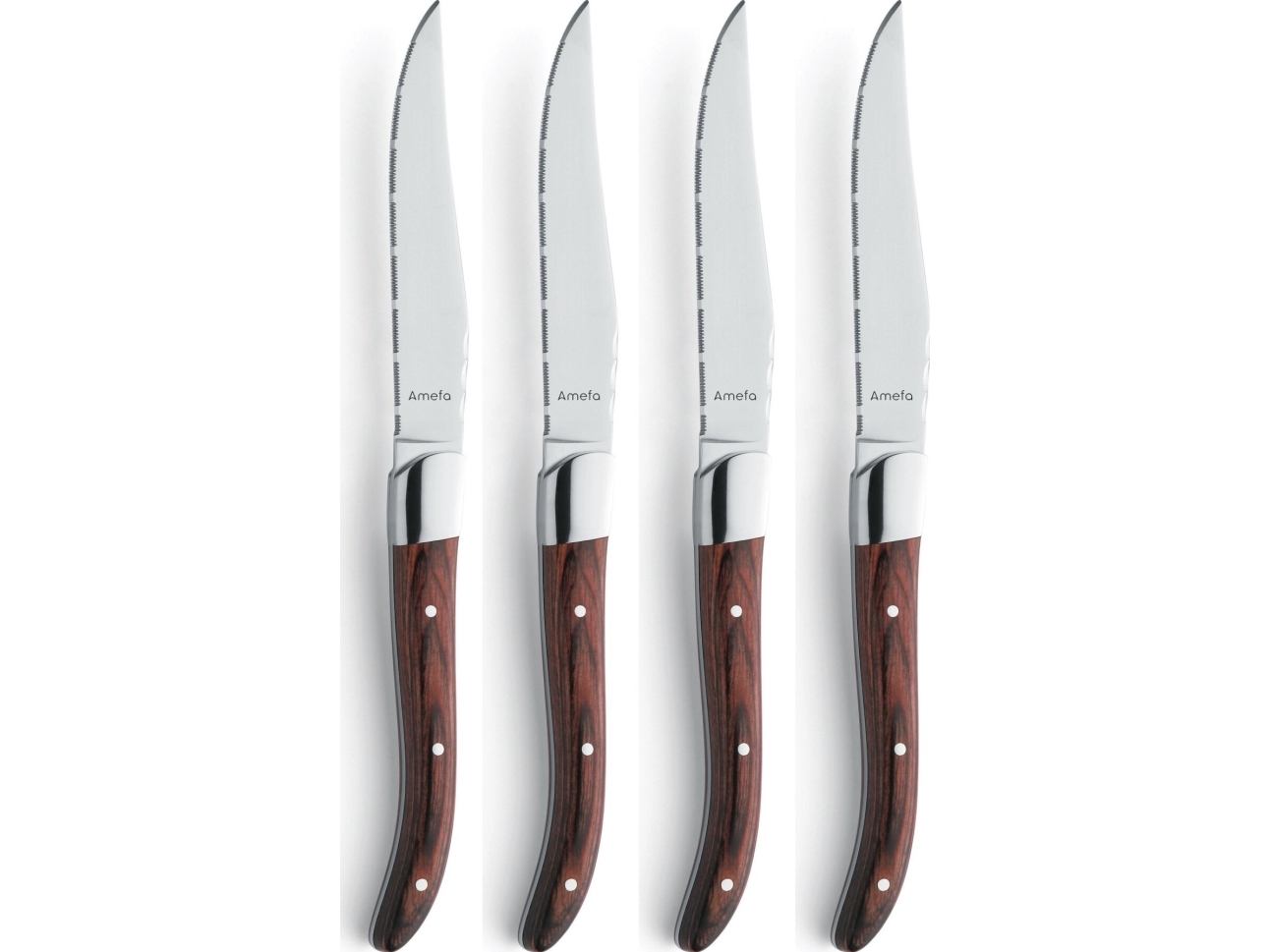 Amefa Royal Steak 2520 - 4-pcs Steak knife set brown in wooden box