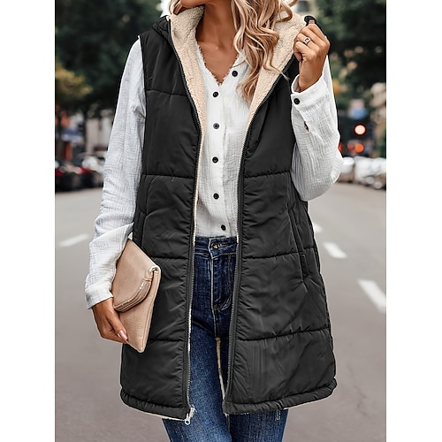 Per donna Cappotto Teddy Gilet Confortevole Aperturaanteriore Attivo Carino Quotidiano Pelliccia Tinta unica Scuola Formale Casa Casuale Lungo Senza colletto Vestibilità regolare Senza Maniche