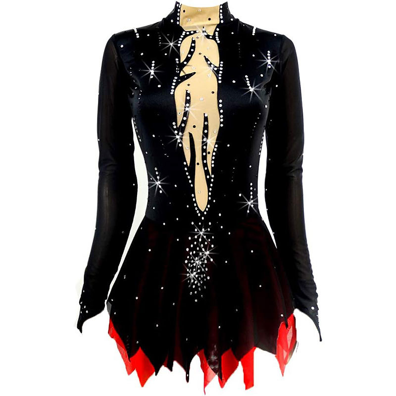 Figure Skating Dress Women's Girls' Ice Skating Dress Black Red Patchwork High Elasticity Training Competition Skating Wear Classic Crystal / Rhinestone Long Sleeve Ice Skating Figure Skating